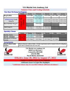 US-Martial-Arts-Academy-Ltd-Summer-Class-Schedule-2022